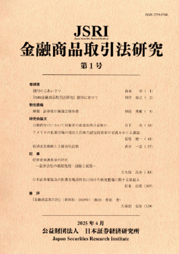 JSRI金融商品取引法研究#年2回刊 金融商品取引法および証券規制に関する学術論文、関連記事等